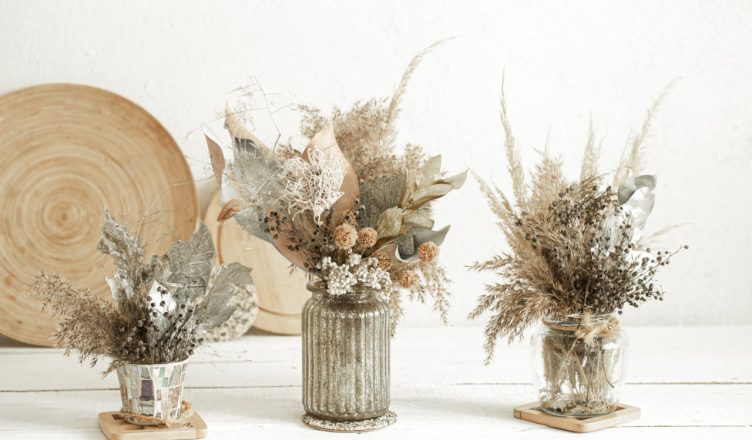 W domowych aranżacjach suszone kwiaty stają się podstawą stylowych kompozycji umieszczanych w wazonach. Mogą ozdabiać:
